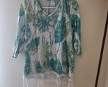 This cute top is still in great condition. The size tag and brand are missing but it seems to be about a M. Pit to pit measures about 18". Has 3/4th sleeves