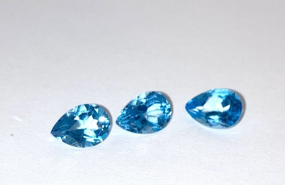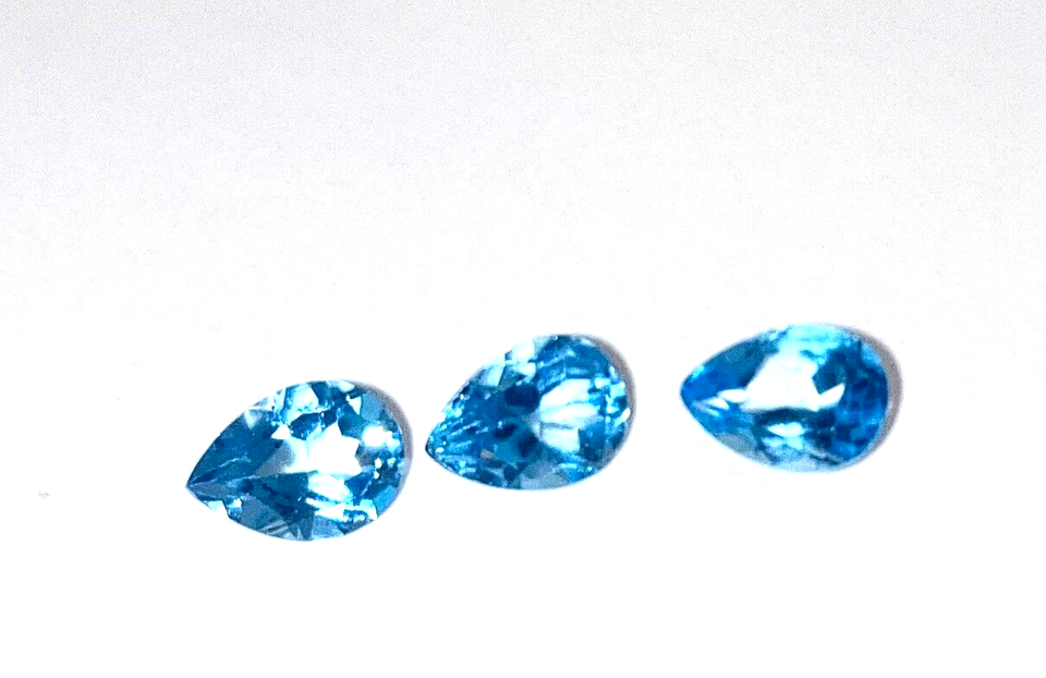 Topaz Swiss Blue 9 x7 mmm Pear shaped stones set of 3 approx 25 carats
