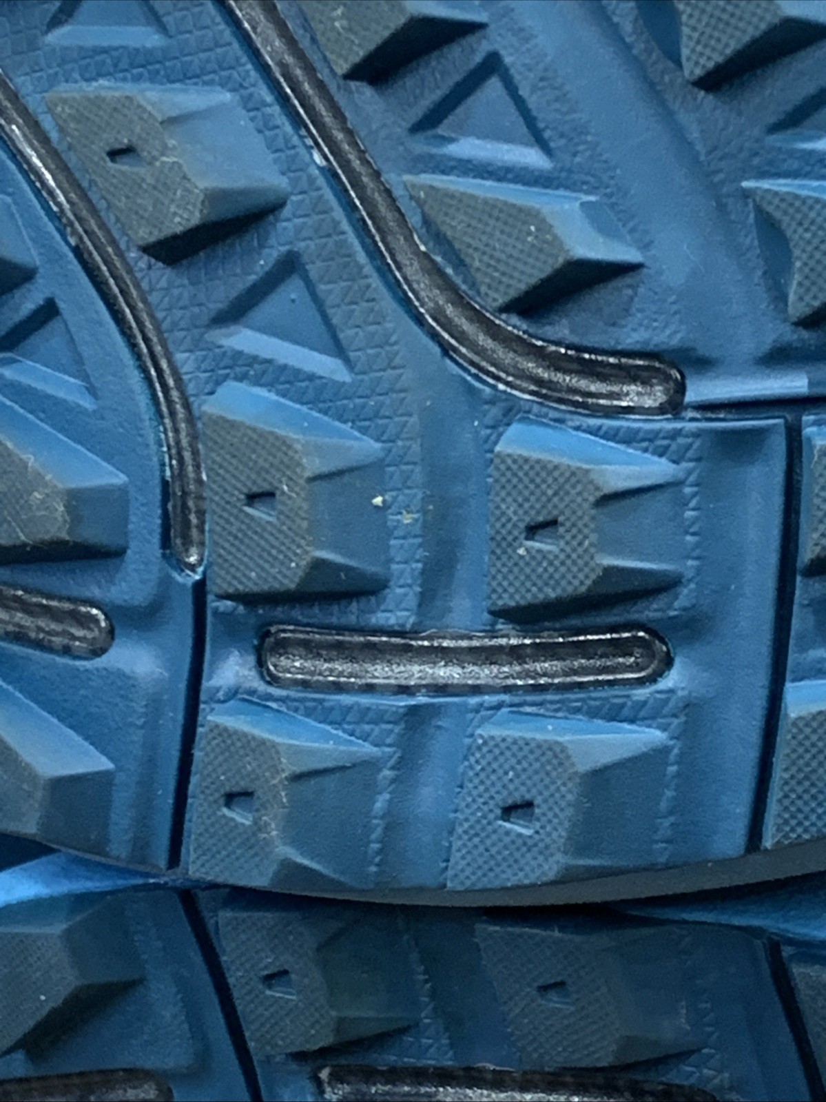These shoes look as if they had been worn outside maybe once. The souls are in excellent condition still have all of the grooving. Insoles look as if there?s no footprint from overuse. Shoelaces are in great condition. Has a small white mark on the toe of the left shoe. It is in the rubber. The material/mesh is in excellent condition. Please look at my photos and ask questions before purchasing.