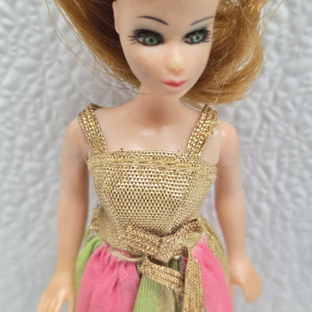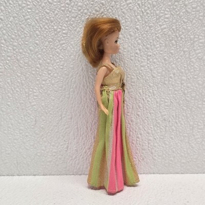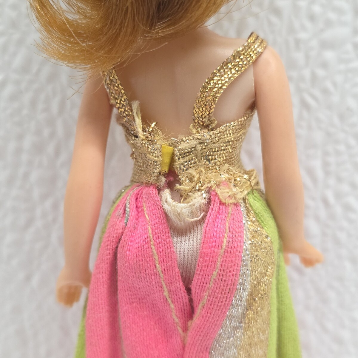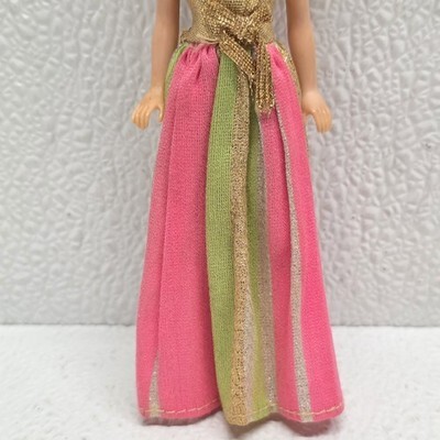Topper Dawn Doll Glori In Striped Splendor Cloak And Swagger Gown Pink Green Gold. Some marks/wear from age, dress is torn a little on one side - see images for condition. Images show actual item that will ship.