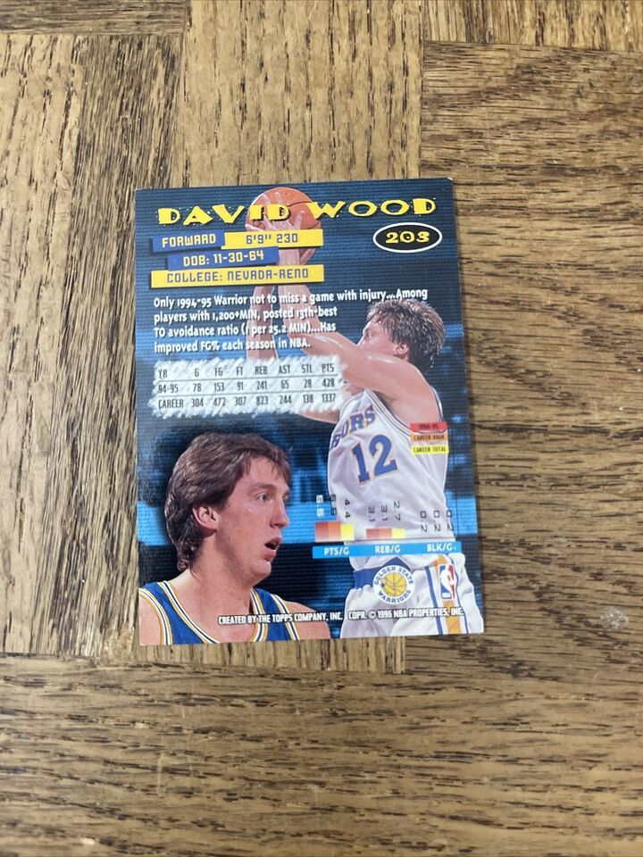 This Topps David Wood Card 203 is a must-have for any basketball fan. It features David Wood, a player from the National Basketball Association (NBA), on a sports trading card with a wood parallel/variety. The card is in very good condition and was manufactured by Topps.