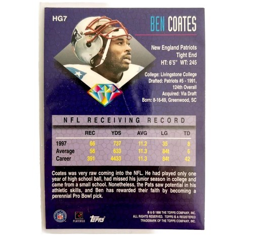 - Topps Hidden Gems Ben Coates Trading Card 1998 New England Patriots BGS1