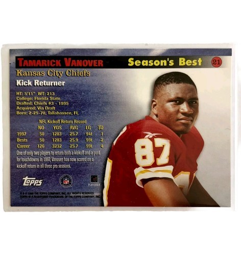 - Topps Quick Six Tamarick Vanover Trading Card 1998 Kansas City Chiefs BGS1