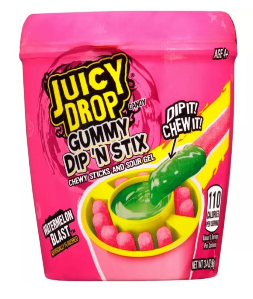 - Topps TOP023219 Juicy Drop Gummy Dip N Stix Watermelon Blast Flavor 3.4 oz. Cup
