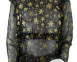 - Topshop Idol Blouse Sz 10 Sheer Black Chiffon Ruffles Gold Sequin Long Sleeve