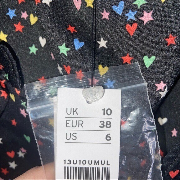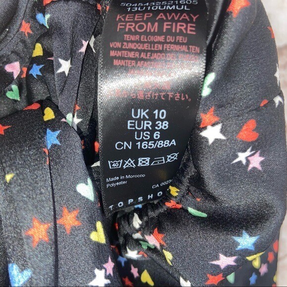 - Topshop Star and Heart Print Tie Front Cropped Blouse in Multi Size 6 NWT