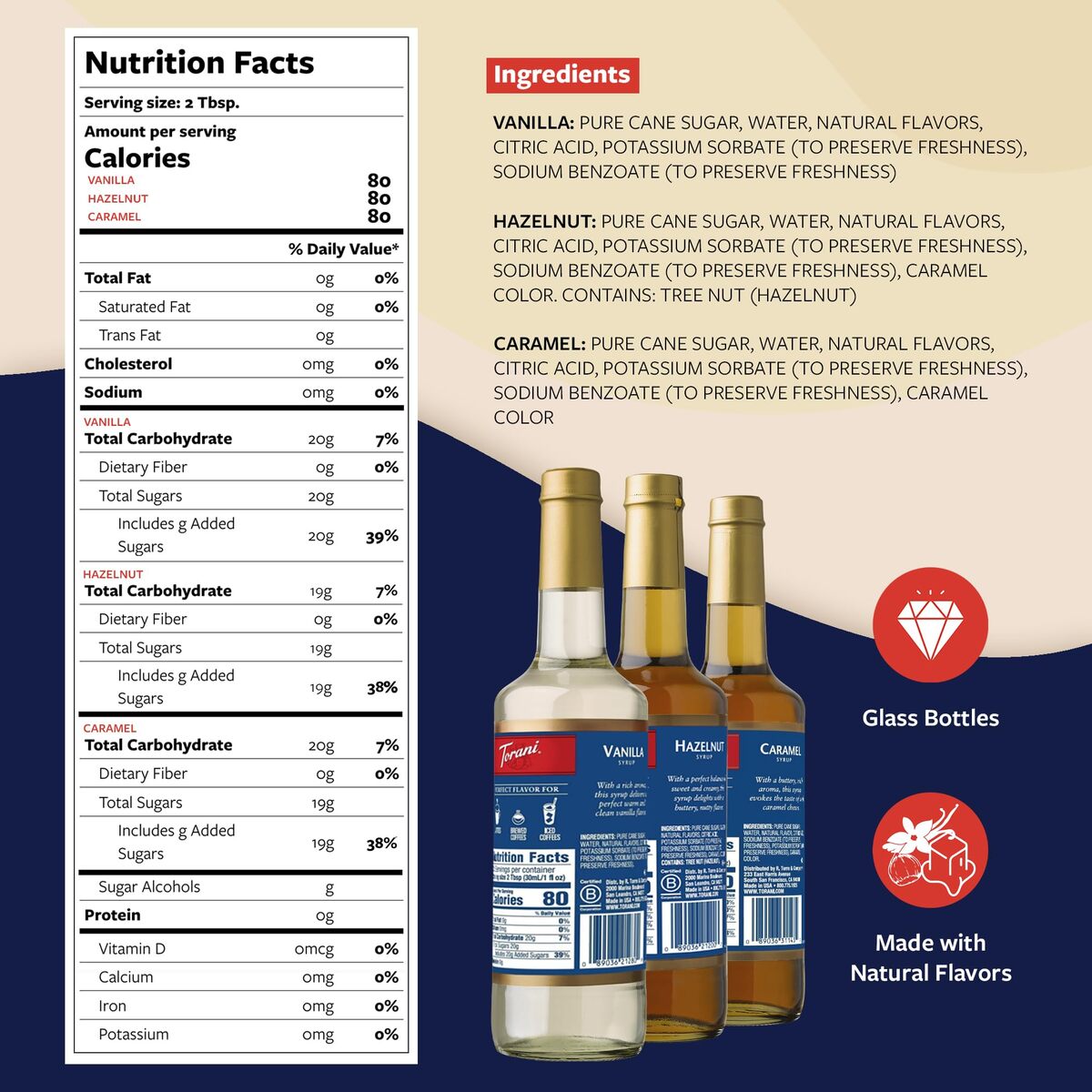 Torani Coffee Syrup, Vanilla, Caramel, and Hazelnut Variety 3-Pack, Flavoring fo