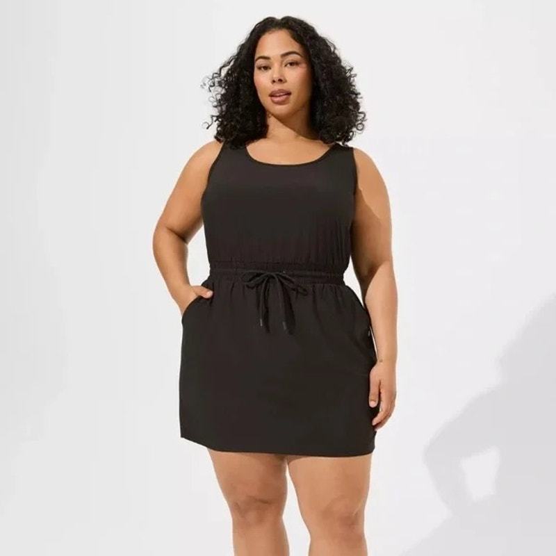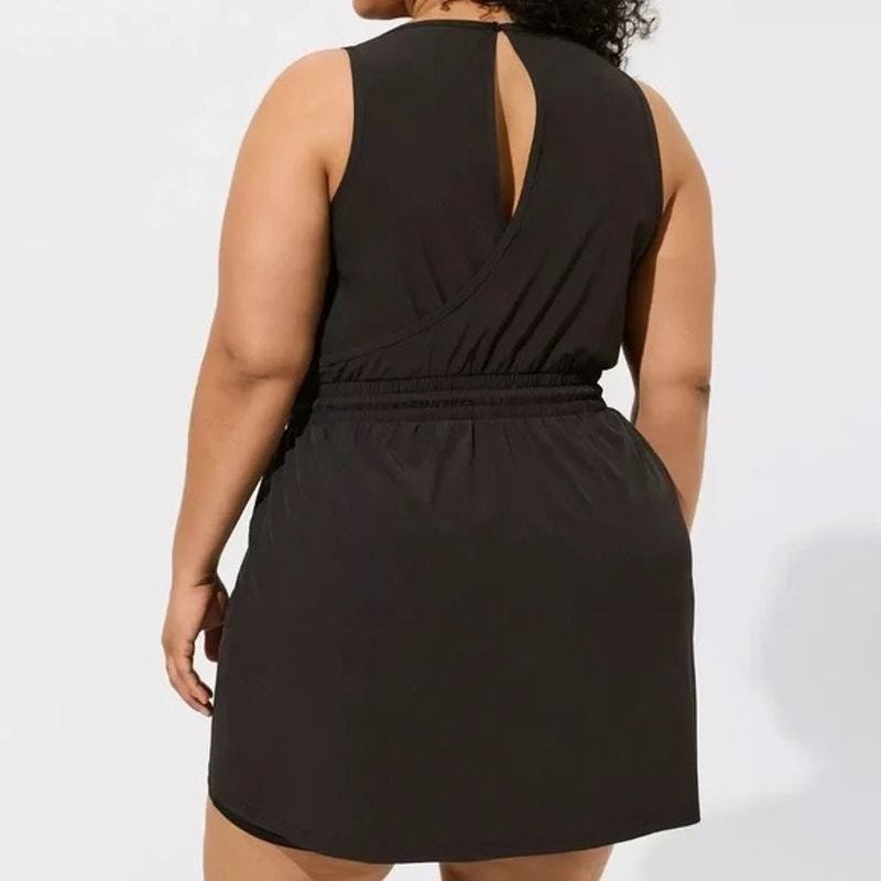 Stay stylish and comfortable with this Torrid Active 2fer dress featuring built-in bike shorts. Perfect for workouts, running errands, or casual wear, it combines sporty function with flattering details.