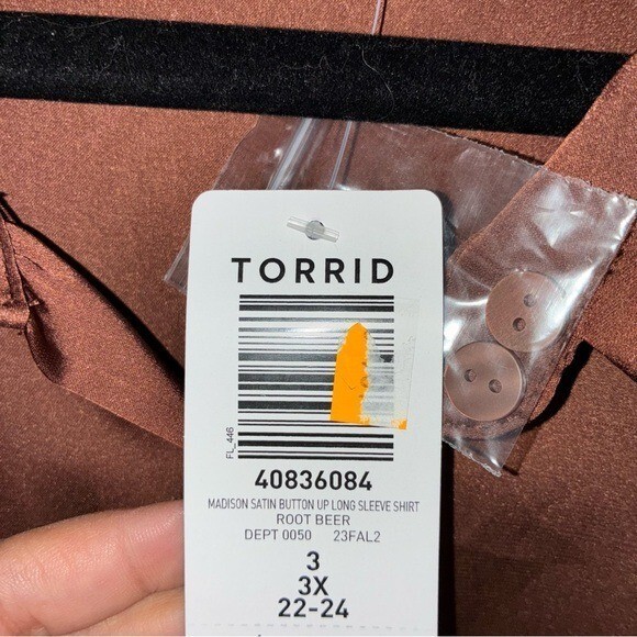 - Torrid Madison Satin Button-Up Long Sleeve Shirt in Rootbeer Size 3X NEW