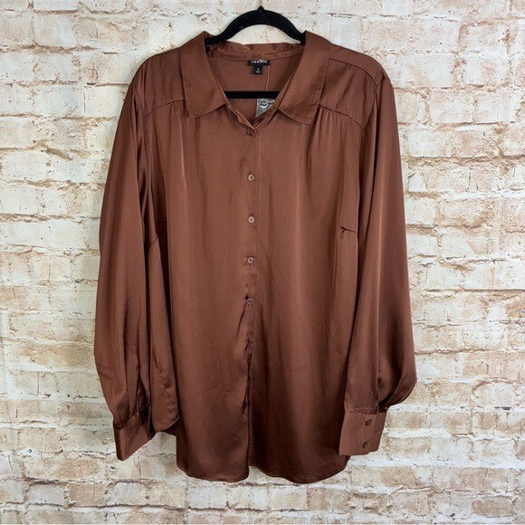 Torrid Madison Satin Button-Up Long Sleeve Shirt in Rootbeer Size 3X NEW