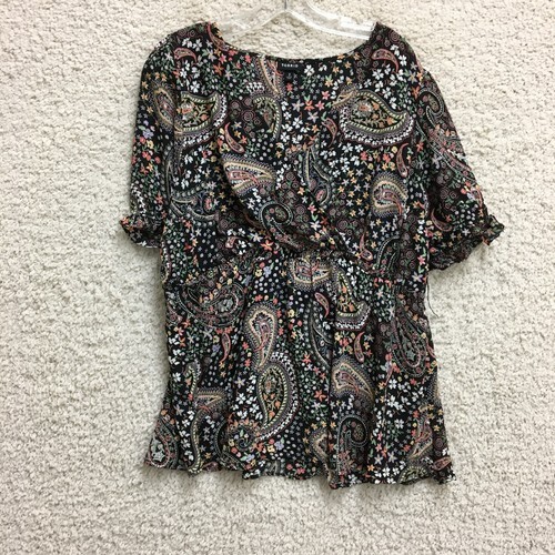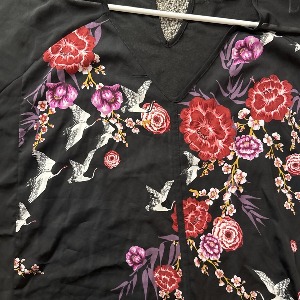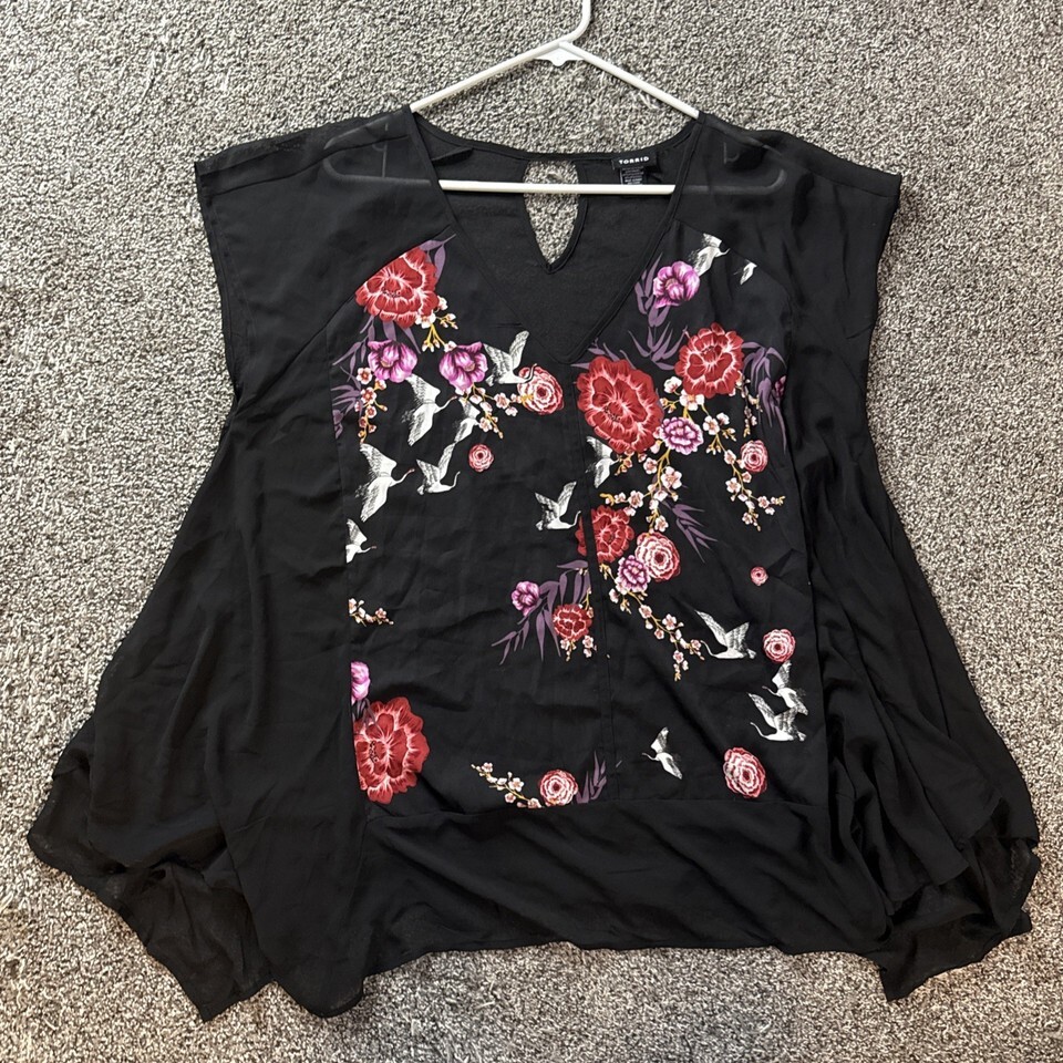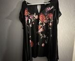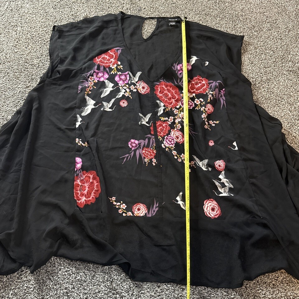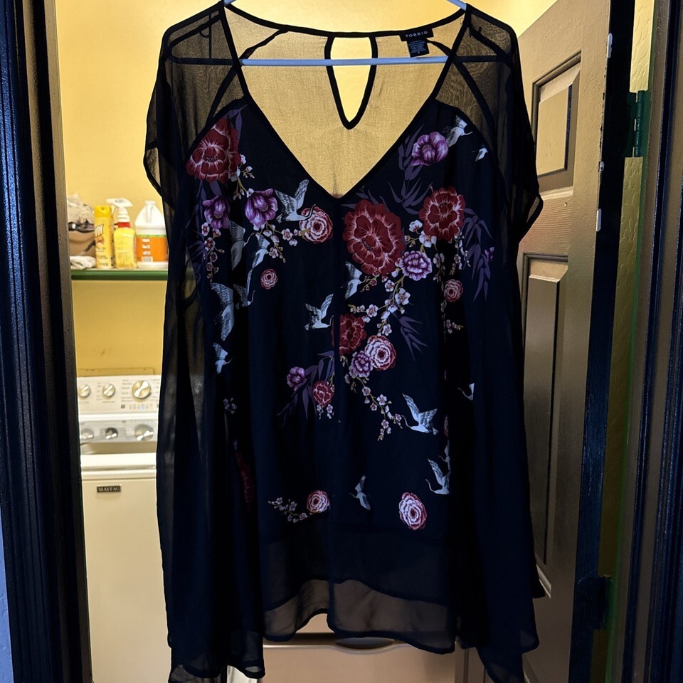 - Torrid Top Womens Plus 2X Black Floral Print Chiffon Semi Sheer Artsy Sharkbite