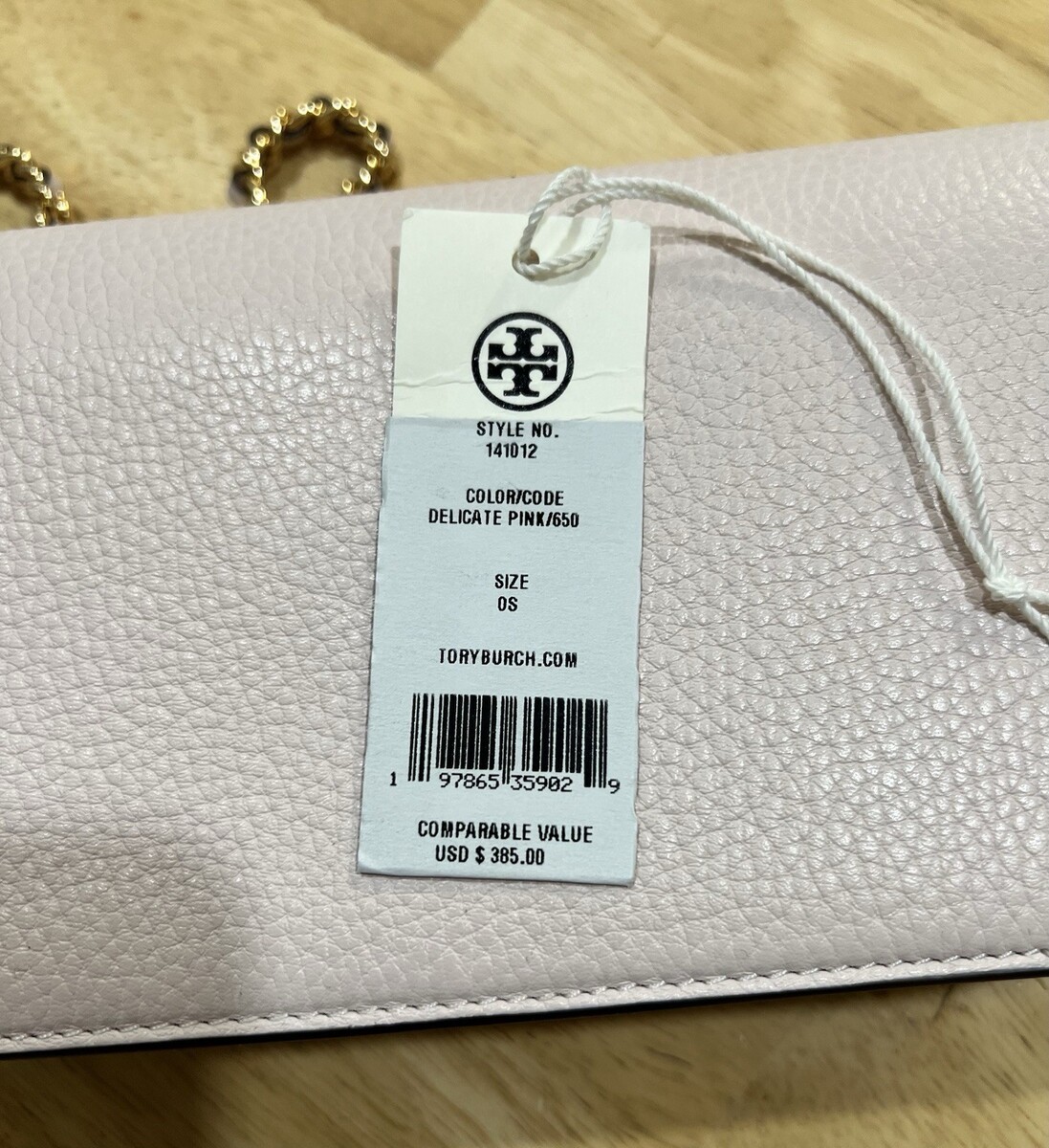 - Tory Burch 141012 Britten Chain Wallet Wristlet Crossbody DELICATE PINK $385