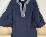 - Tory Burch Ariana Navy Tunic Blouse Bell Sleeves Loose Fit Size 0 Embellishment