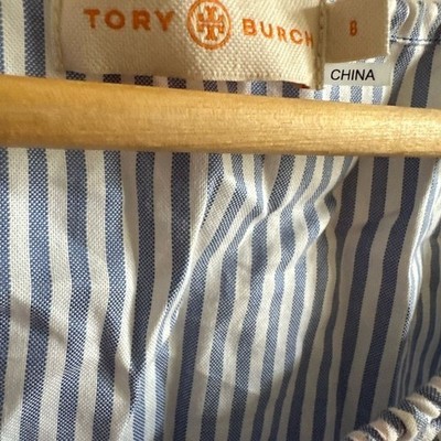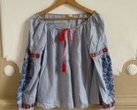 - Tory Burch Madison peasant top blouse embroidered striped 8 boho blue white