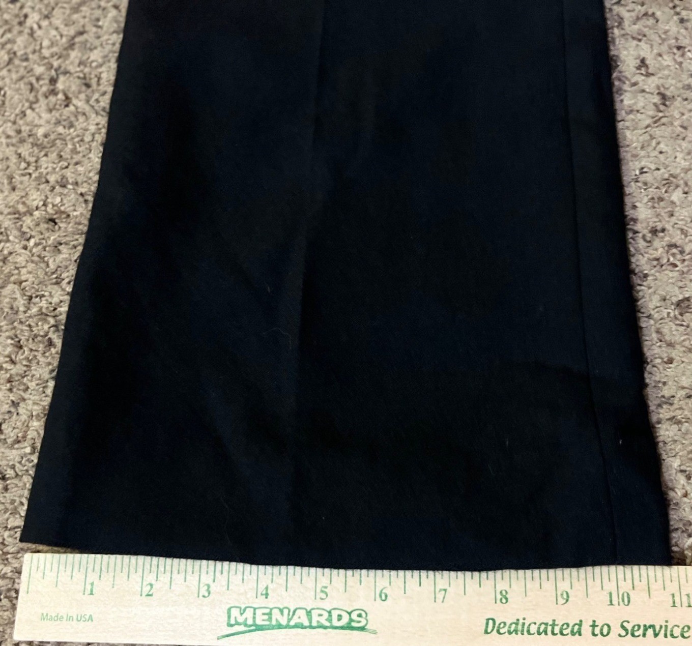Elegant Tory Burch women?s black wool pants, size 8, perfect for career, office, or dressy occasions. These fully lined pants feature a smooth side zip closure and a wide leg silhouette for a timeless, tailored look. Crafted with 100% wool and lined in luxurious cupro, they offer comfort and sophistication year-round. Ideal for fall and winter professional wear, but versatile enough to pair with lighter blouses in spring. A polished, high-quality wardrobe essential.