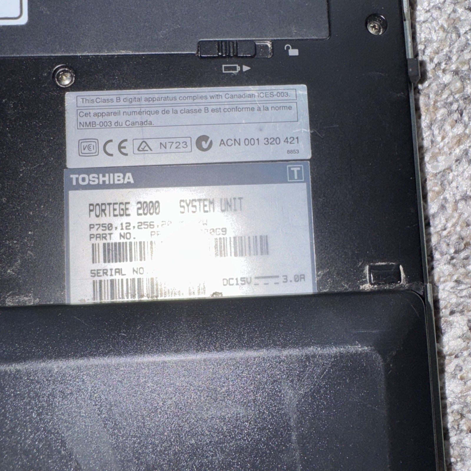 Toshiba Protege 2000 Vintage Win XP Laptop Pentium 3 750mhz 240mb Ram 20gb HD
