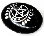 Hold this palm stone when you feel you need a little assistance with feeling safe, protected or grounded. Pentacle and moon with moon phases carved into this special palm stone. Black tourmaline also acts as a vacuum with negative energy, making this a great piece to take anywhere with you. Ranging in size up to 3" and each one being unique in shape and size.