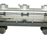 This vintage Toy State 93288 Oil Tanker Car is a great addition to any model railroad or train collection. The gray plastic tank car is designed as a replica of the Santa Fe corporate roadname and has a scale of 1:5. It is ready to go with a pre-built assembly status and runs on a 2-Rail-2-Conductor rail system with DC power type and analog control system.