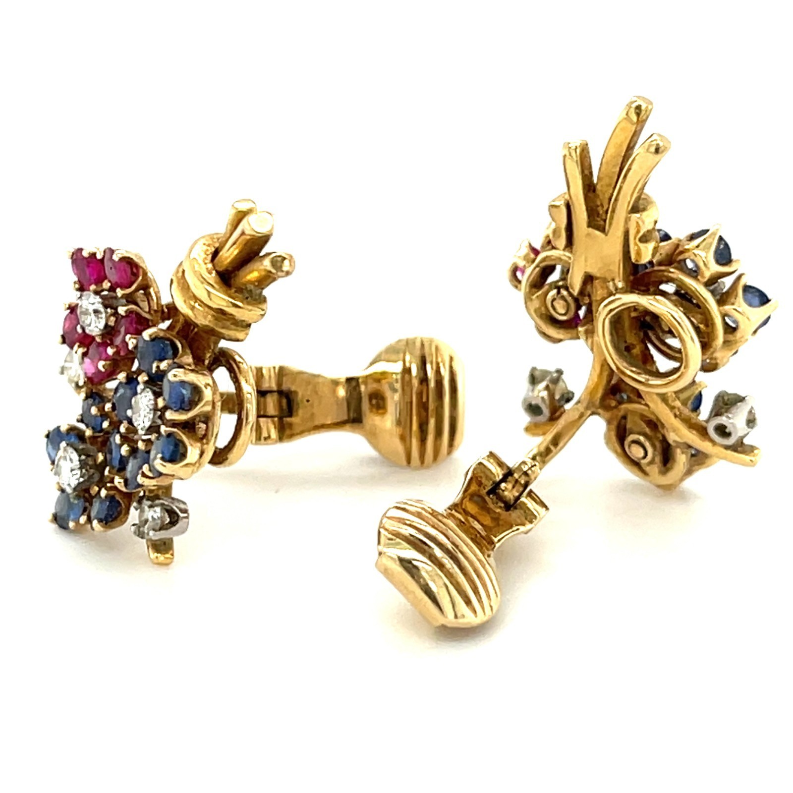 Features Gemstone Floral Motifs Set in 18k Yellow Gold with White Gold Accents