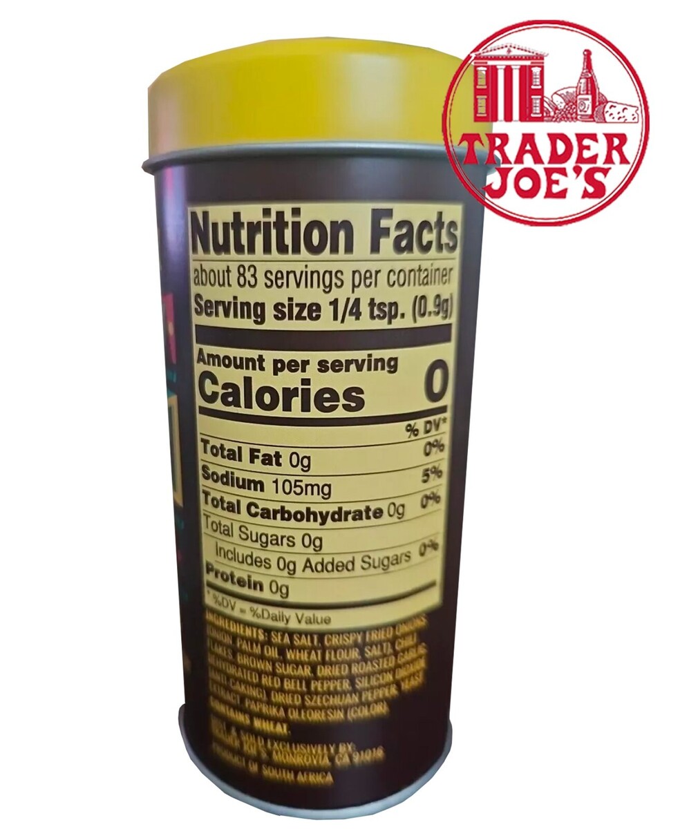 Spice up your dishes with Trader Joe's Crunchy Chili Onion Crunch Sprinkle Seasoning Blend. This versatile seasoning blend is perfect for adding a kick of flavor to any dish, whether it's a stir fry, curry, or soup. With a total of 83 servings per container, this seasoning blend is sure to last you for many meals to come.
