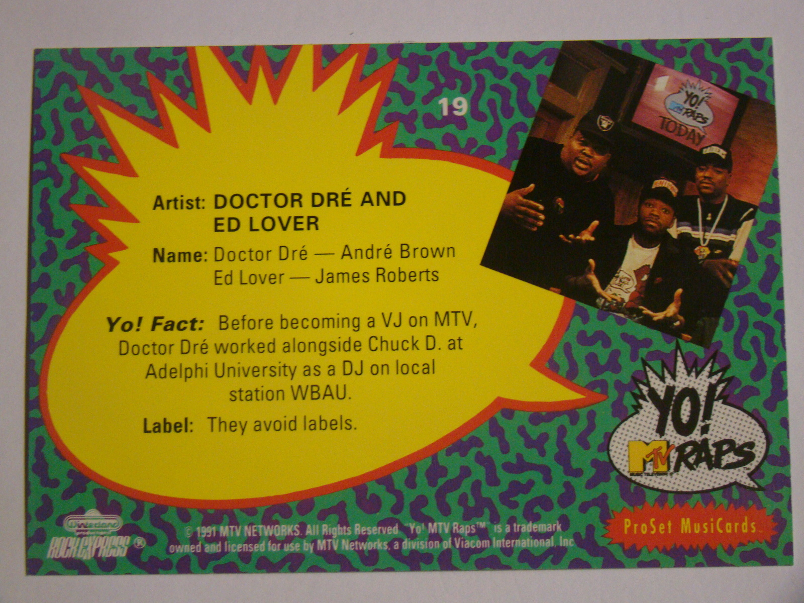 - Trading Cards -1991 ProSet MusiCards - YO! MTV RAPS - DOCTOR DRE and ED LOVER