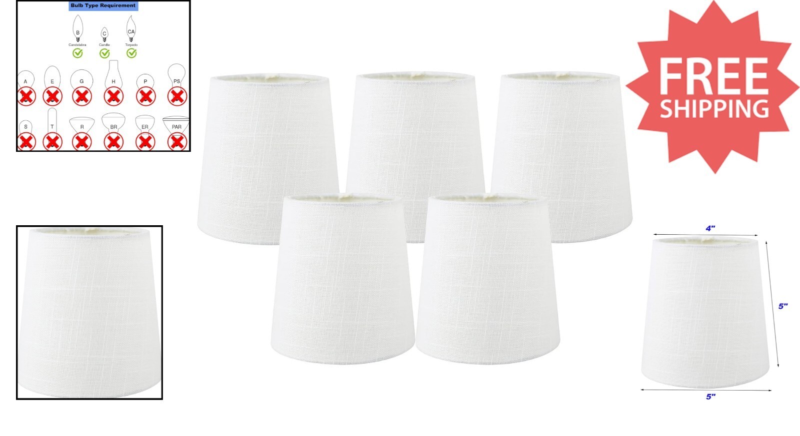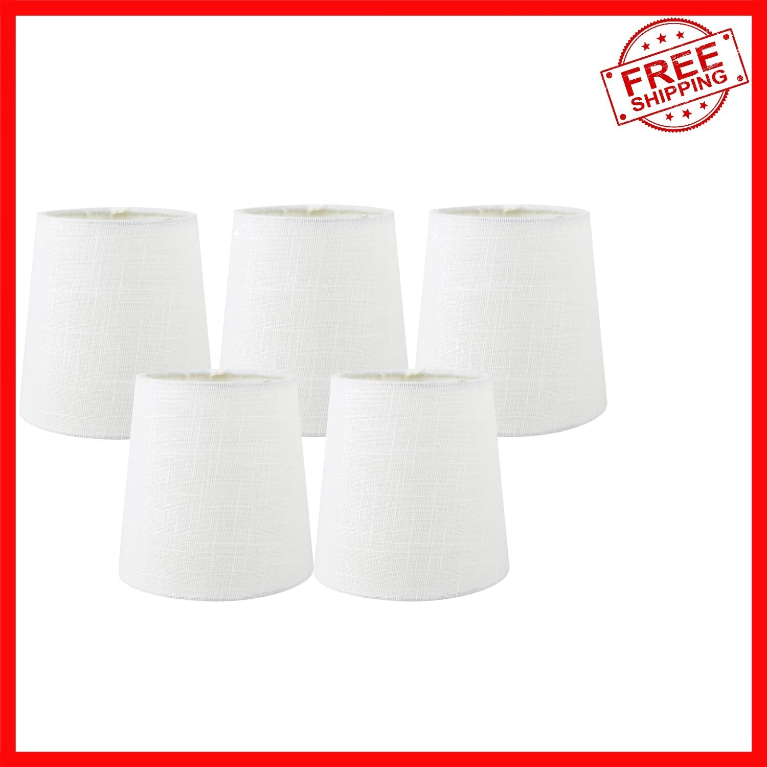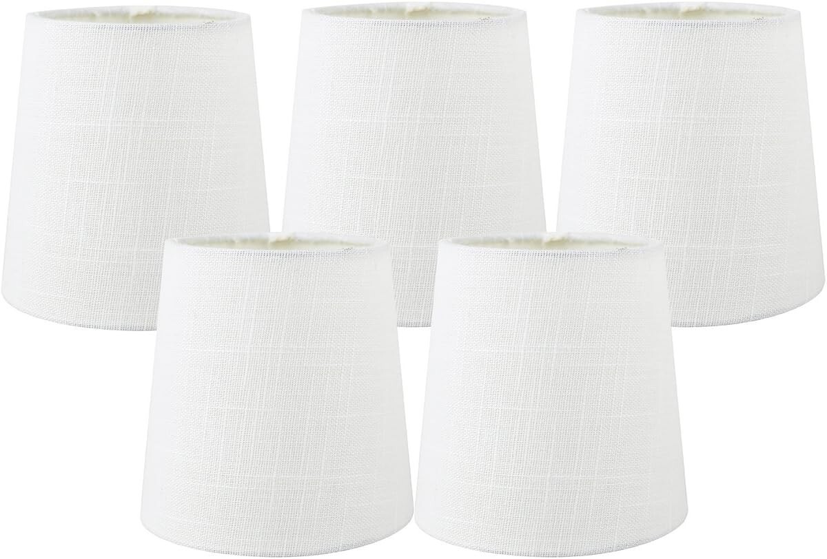 - Traditional Off White Linen Clip-On Chandelier Shades - Set of 5, 4x5 Inches