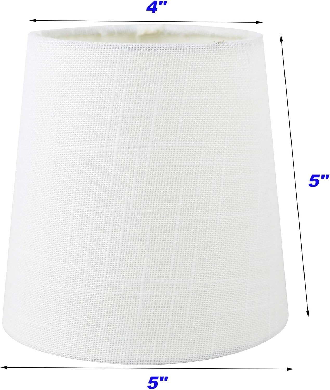 Illuminate your space with our elegant linen hardback lamp shade, measuring 4" at the top, 5" at the bottom, and standing 5" tall. Designed with a clip-on fitter compatible with teardrop or torpedo candelabra bulbs?please note, it is not suitable for standard bulbs. The recommended maximum wattage is 40 watts, ensuring a safe and warm ambiance. Perfect for adding a touch of sophistication to your lighting decor.