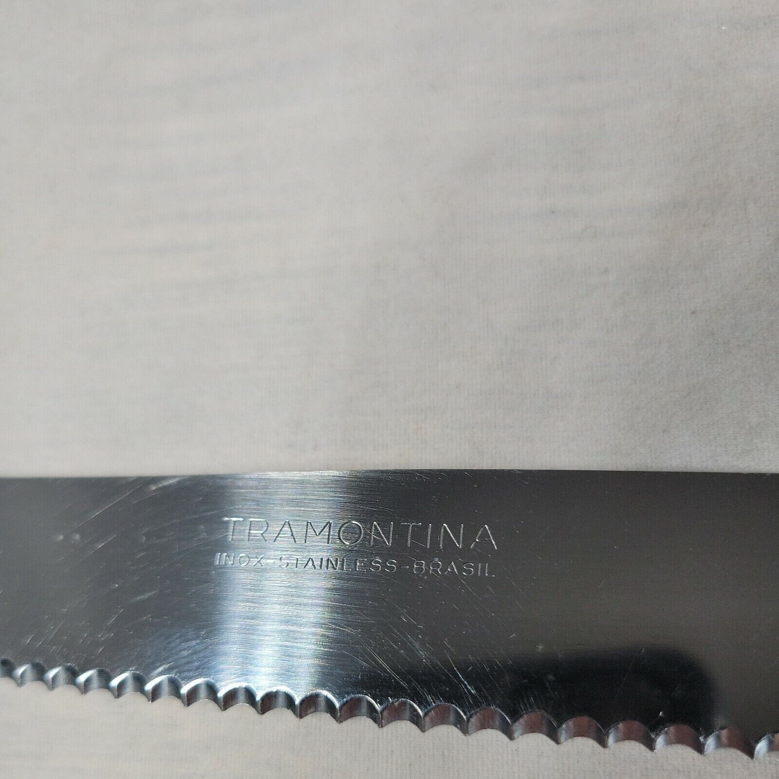 - Tramontina Inox 8” Knife Full Tang Wood Handle Stainless Bread Knife Vintage