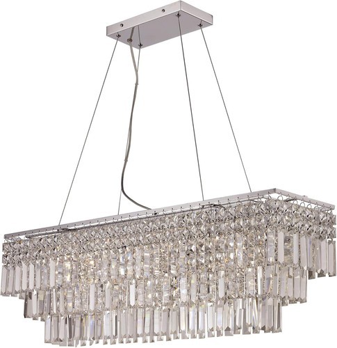 The Embassy Collection supplies ample lighting for your daily needs, while adding a layer of modern style to your home's decor. It is perfect for adding a warm glow to a variety of interior applications. This elongated, beautiful pendant has five lights and is draped with layers of crystal that capture and reflect the light. Bulbs are included with this fixture. The classic elegance of the Embassy Collection is sure to impress all who encounter it.