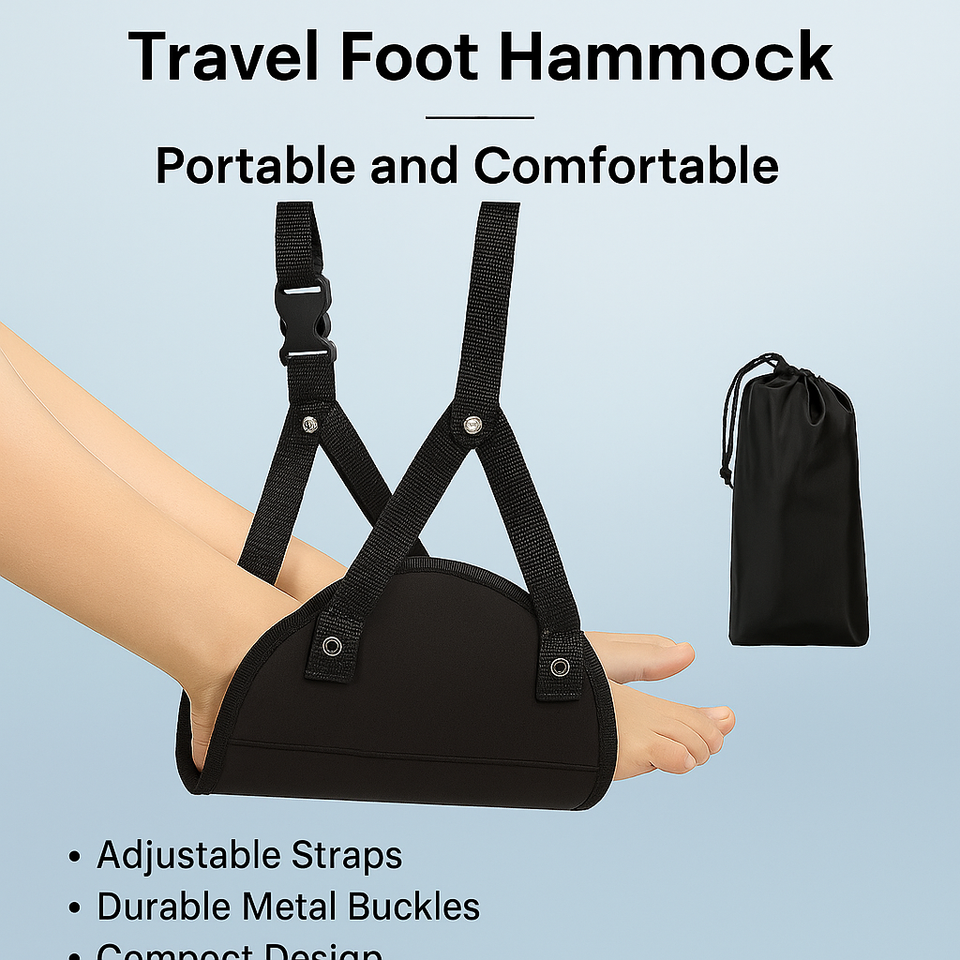 Stay comfortable anywhere with this Travel Foot Hammock, designed to support your feet and legs while reducing pressure, improving circulation, and helping you relax during long periods of sitting. Perfect for airplane travel, office work, train journeys, bus trips, or relaxing at home.