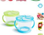 - Travel-Friendly Toddler Snack Catcher Cups - 2-Pack Blue/Green, Dishwasher Safe