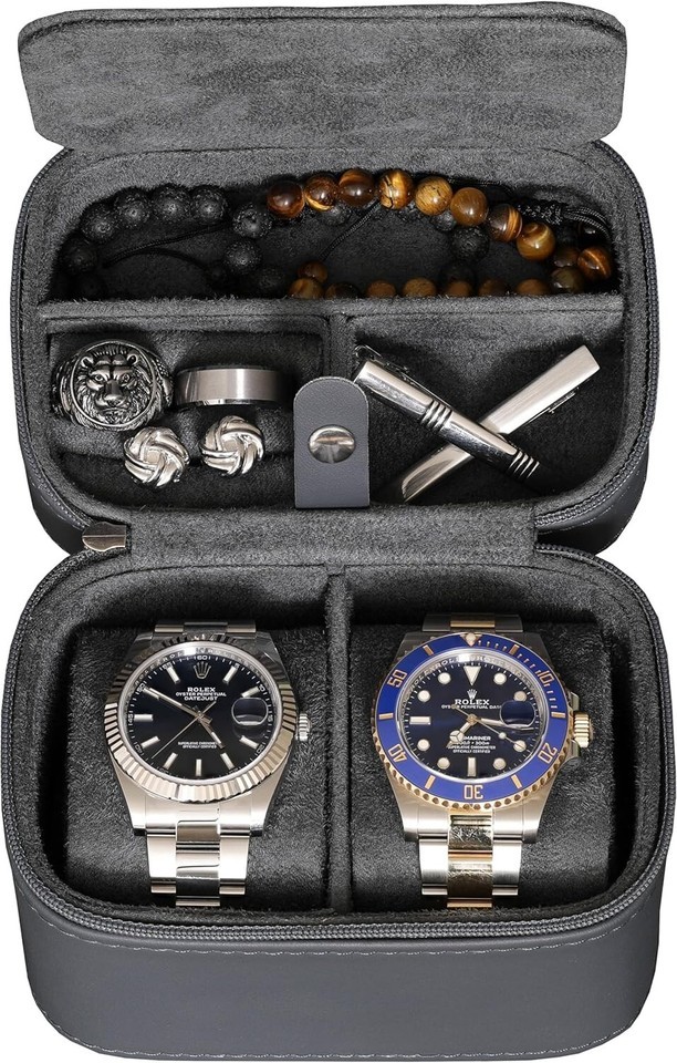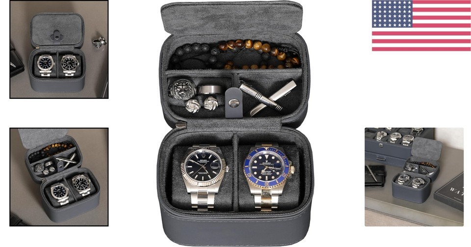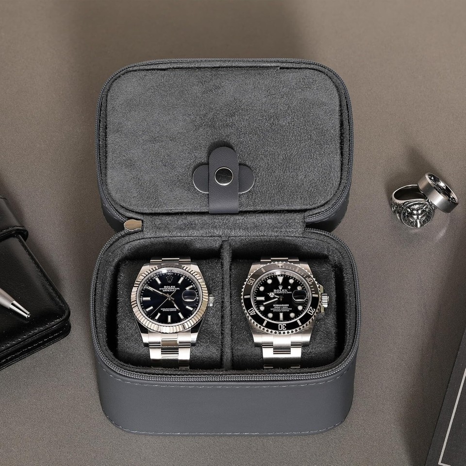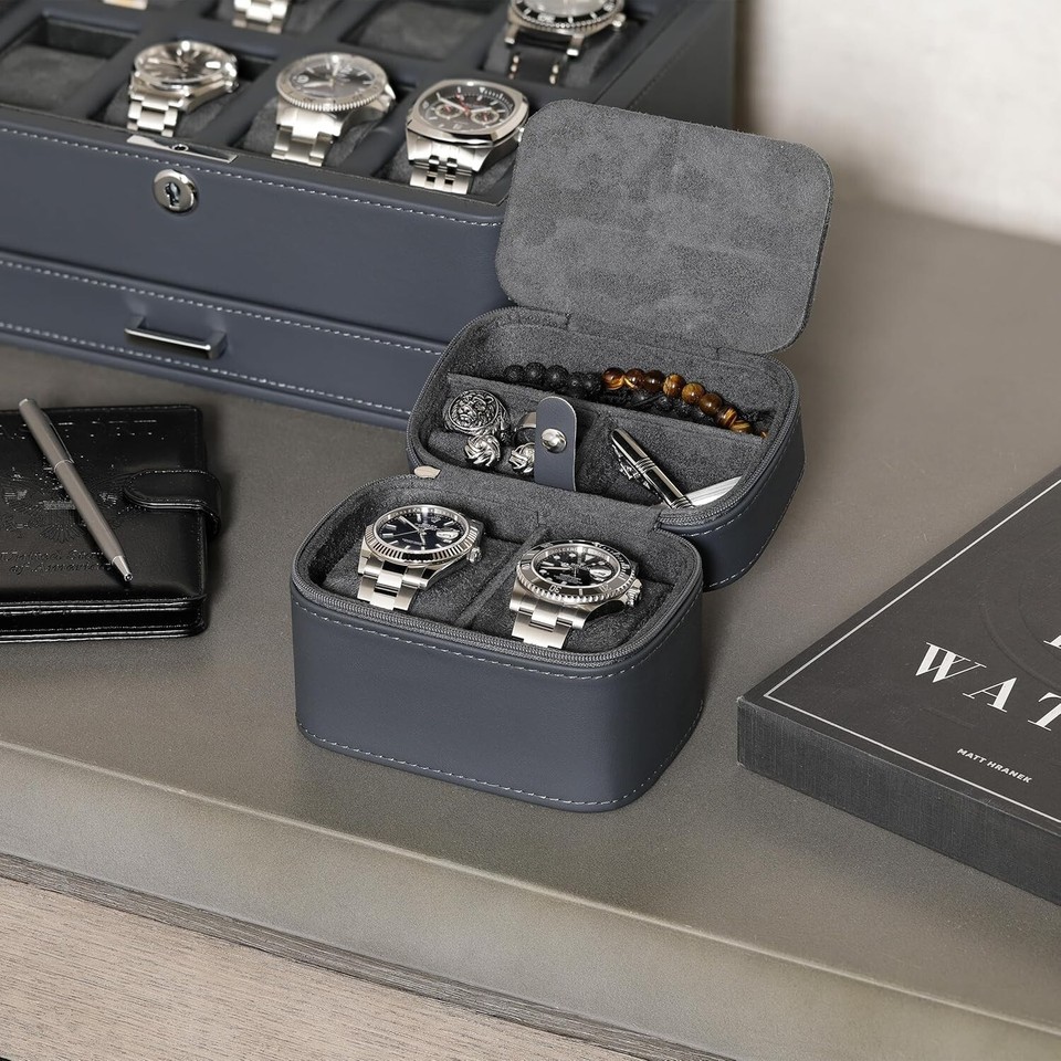 - Travel-Ready Leather Watch Case - Holds 2 Watches with Ring Storage Compartment