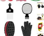 Includes a two-sided hair sponge, curl sponge glove (right), a hair pick, and a hair twist comb.