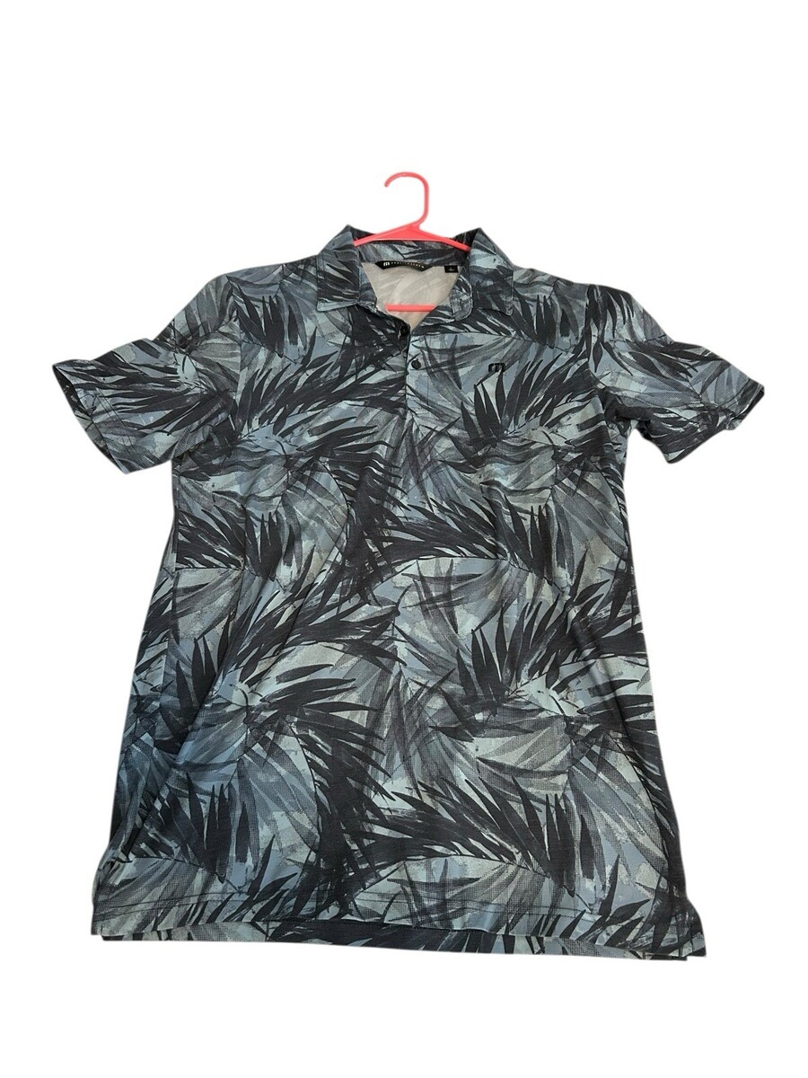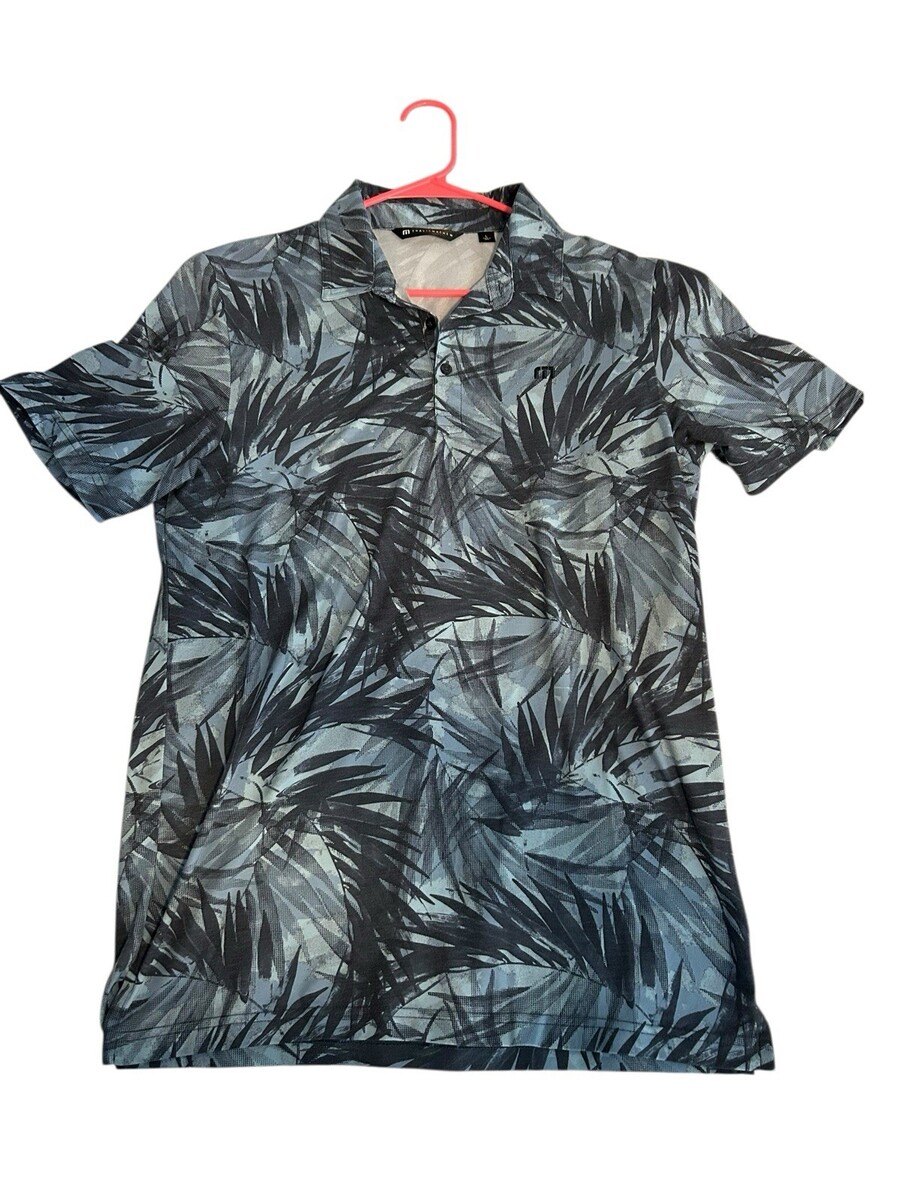 - Travis Mathew Polo Shirt Mens Large Blue Floral Hawaiian Short Sleeve Golf