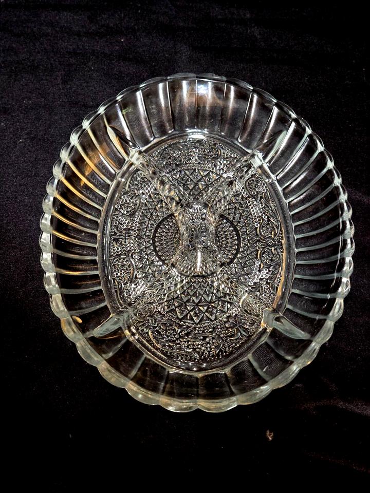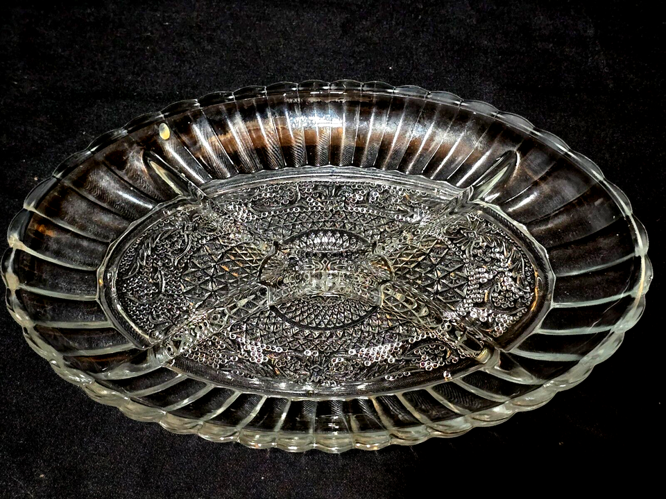 TRELLIS By CRYSTAL CLEAR INDUSTRIES 4-Part Relish Dish Tray 8.5" x 6" - MINT