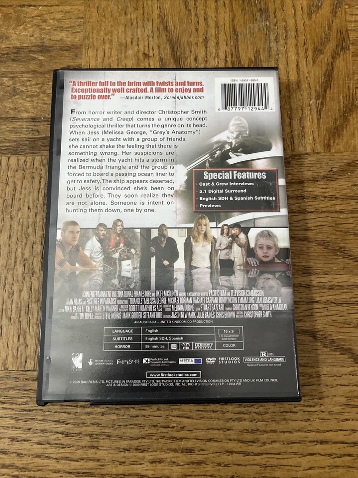 This DVD is a must-have for any movie lover! Featuring the talented director Christopher Smith, the movie Triangle is a thrilling drama with an R rating. The story follows a group of friends who set sail on a yacht and encounter mysterious and terrifying events.