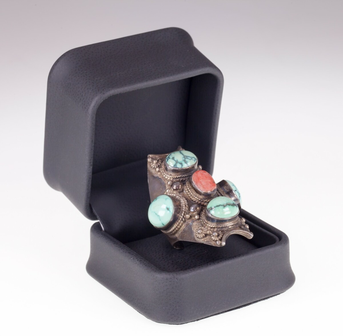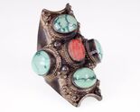 - Tribal Türkis & Koralle Lang Sterlingsilber Ring Größe: 10.75