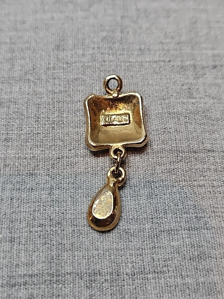 - Trifari Gold Tone Blue Square Charm/Pendant Vintage