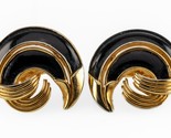 - Trifari Vintage Doré Émail Noir Volutes Costume Boucles D'Oreilles