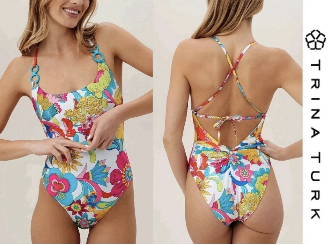 - Trina Turk Fontaine One Piece Swimsuit Strappy Convertible Back SZ 10 NEW