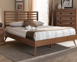 Give your bedroom the illusion of depth with the Trina bed. Built with a low platform set on top of angled, tapered legs, the Trina displays all the hallmarks of stylish mid-century modern design. The headboard features a wide-set slat design, ideal for providing a light, open feel in smaller spaces. Constructed from sturdy wood, the Trina flaunts a rich walnut brown finish that brings a sense of warmth to any color palette. The Trina bed is made in Malaysia and requires assembly.