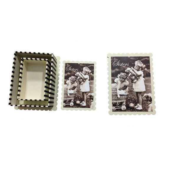 Sisters is at the top of the box. Accented with silver glitter Scalloped