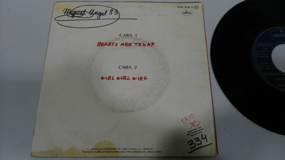 TRIO HEARTS ARE TRUMP 1983 MERCURY SINGLE 7" VINYL SPANISH EDITION RARE