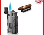 - Triple Jet Flame Refillable Butane Cigar Lighter with Punch and Holder