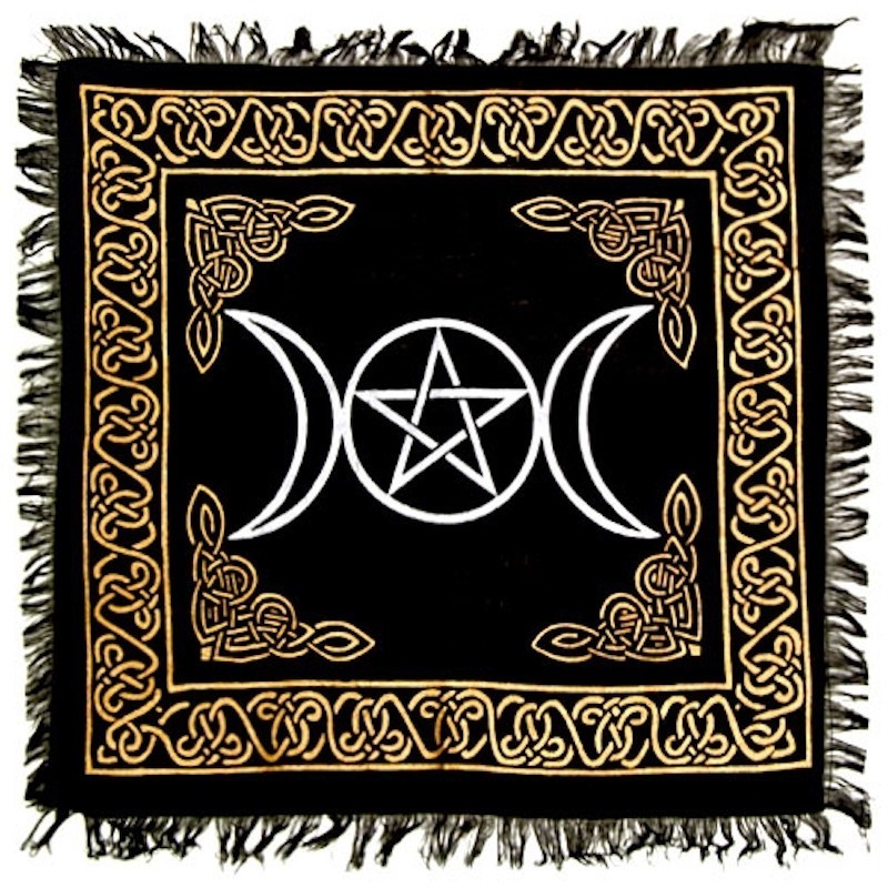 - Triple Moon Goddess Pentacle Gold and Silver 18" x 18" Altar Cloth!