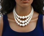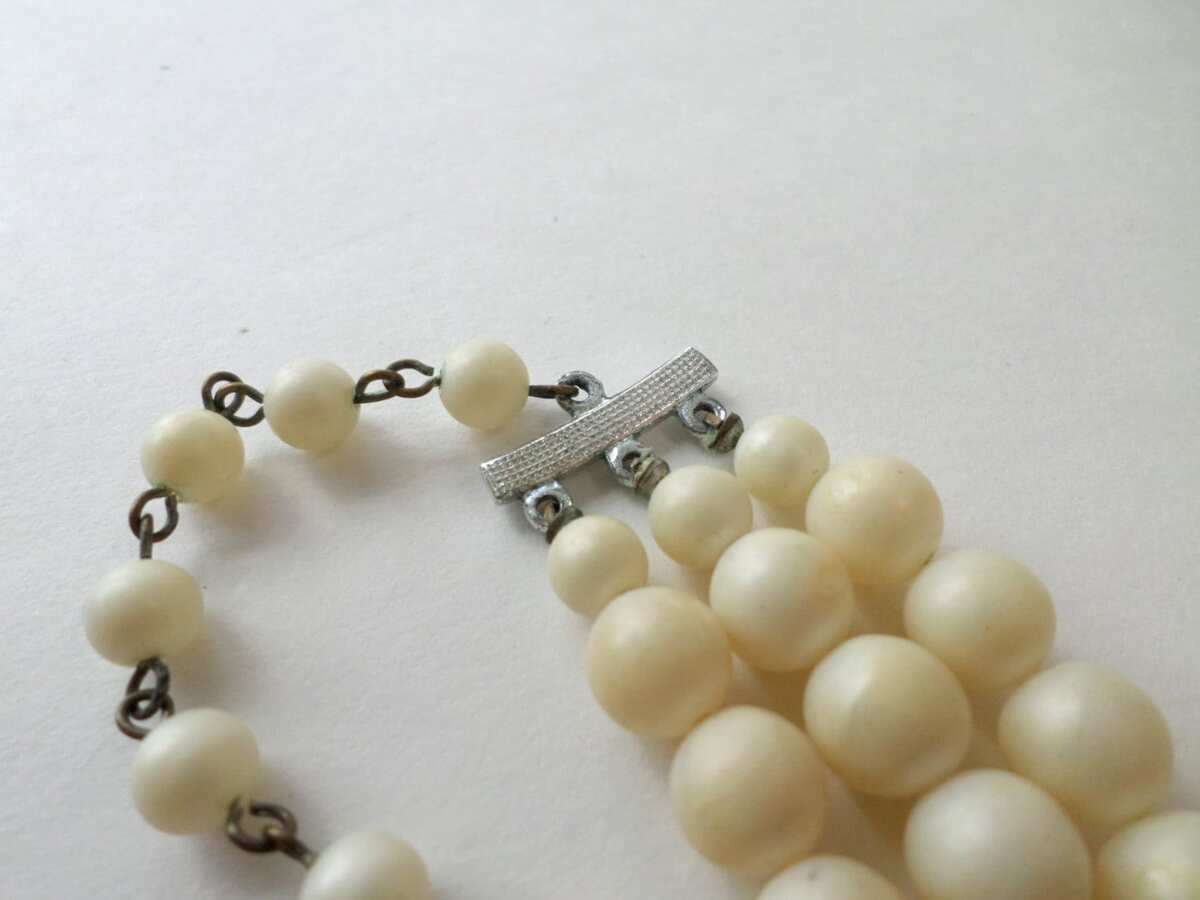 - Triple Strand Cream Bead Choker Necklace, Mid Century Japan Jewelry