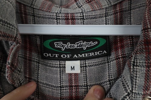 - Troy Lee Designs Mens Medium Spell Out Baggy Fit Flannel Snap Button Shirt USA