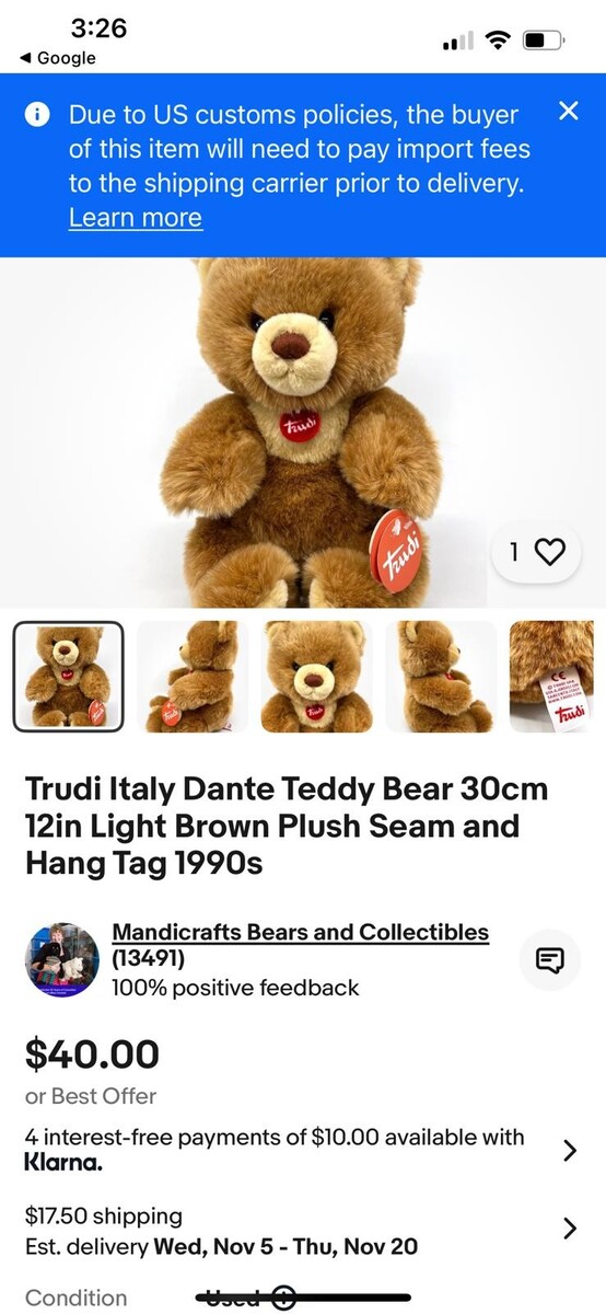 - Trudi Brown Plush Bear Soft Toy