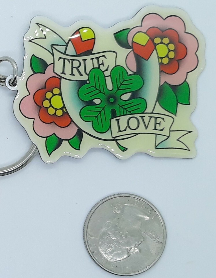 - True Love Lucky In Love - Shamrock Horseshoe Metal and Enamel Key Ring - Yujean