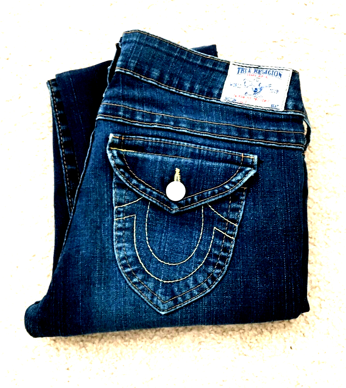 - TRUE RELIGION BRAND JEANS SECTION JULIE USA IMPORTED FABRIC SZ W 32 L 35 RISE 9"